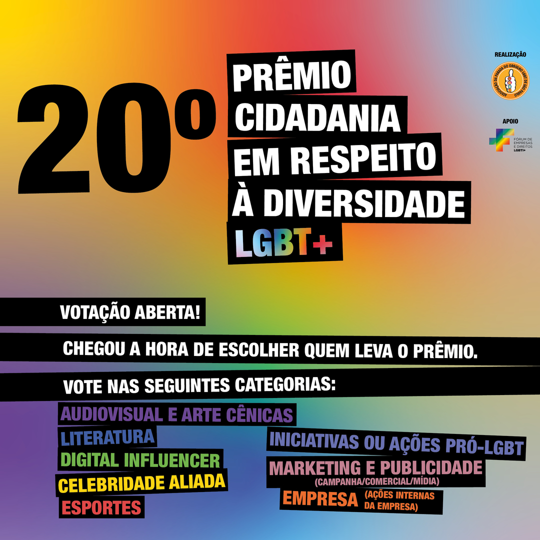 Concorrem também a série da Netflix “Pose” e a websérie Patrícia. A votação é popular. Clique aqui para votar e nos ajudar a vencer a premiação. Não é obrigatório votar em todas as categorias.
