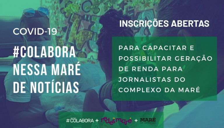 Vai começar o #Colabora nessa Maré de Notícias, iniciativa construída em parceria entre o Projeto #Colabora e o Maré de Notícias, o jornal da Redes da Maré. Uma convocação a jornalistas residentes no conjunto de favelas da Maré, para produzir conteúdos sobre o impacto da pandemia de covid-19 em suas comunidades. Serão oferecidas cinco bolsas de reportagem, financiadas pelo Fundo Enfrente, nova modalidade de fomento, que mistura o financiamento coletivo (ou crowd-funding) com aporte de parceiros, para multiplicar a arrecadação. Assim, para cada R$ 1 arrecadado pelo projeto, o Fundo Colaborativo Enfrente contribui com mais R$ 2. O projeto foi selecionado pela plataforma Benfeitoria com apoio da Fundação Tide Setubal.