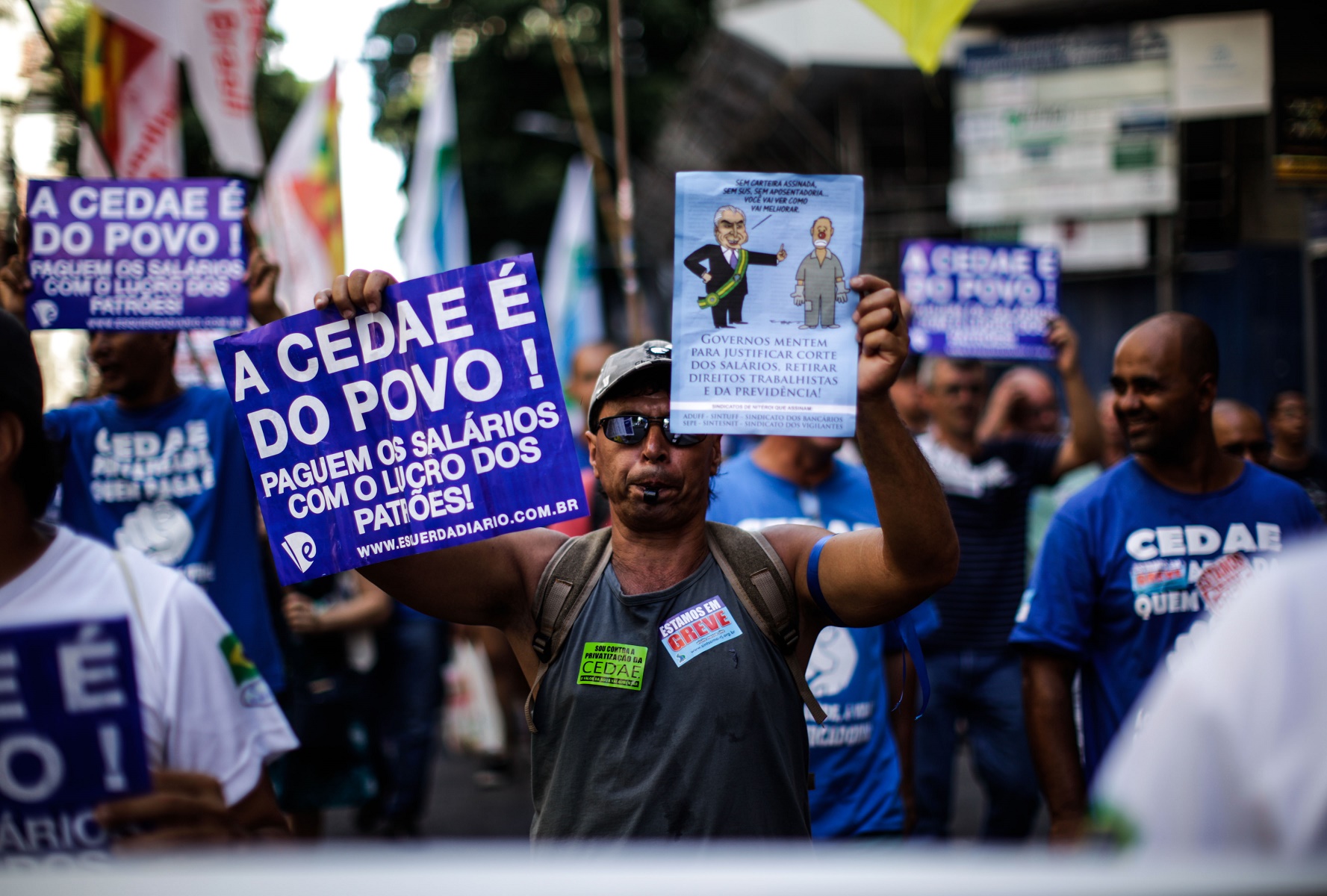âHá anos a Cedae vem sendo sucateada pelos mesmos que hoje querem vendê-la, causando enormes perdas à população. Querem transformar água em mercadoriaâ, protesta Sandro Alves dos Anjos, o Kalu (MDB), presidente da Câmara local e funcionário da Cedae.