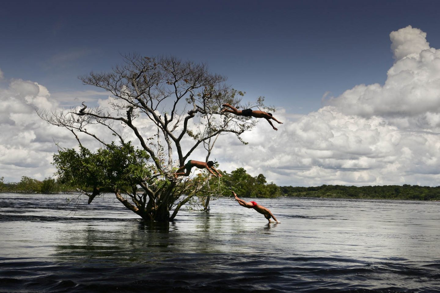 São Gabriel da Cachoeira (AM) 10/08/2006 Crianças brincam e saltam no Rio Negro.